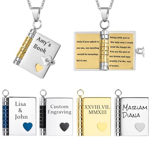 Alwesam Personalized Book Locket Necklace with Message Custom Engraved Love Letter Pendant Jewelry Gift for Her Him Women Men Couple Family Friend Birthday Valentine Mother Day