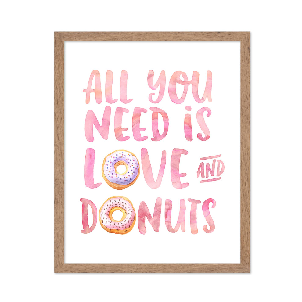 Poster Master Vintage Quotes Poster - Retro Funny Print - Gift for Foodie Friend - All You Need is Love and Donuts Watercolor Valentine - Wall Deco