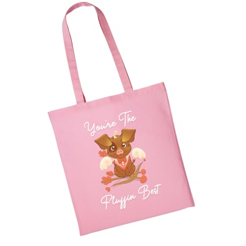 You're The Fluffin' Best Pink Tote Bag, Cute Dog Design, Shopping Shoulder Bag, Reusable Carry-All, Cute Cupid Pig Canvas Tote Bag: "You're The Fluffin' Best" Funny Valentine's Day Gift for Her, Pink