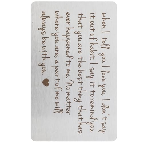 ibasenice Engraved Stainless Steel Wallet Insert Card with Romantic Message Shiny and Purse Card for Couples Anniversary Valentine's Day Gift for Him Her