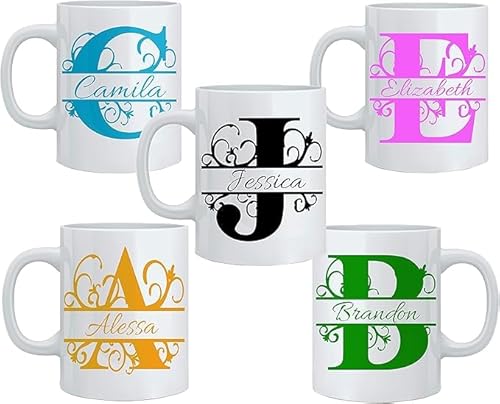 Personalised Mug with Name & Initial – Custom Printed Initial Ceramic Coffee Cup – Perfect for Valentine,Tea, Birthday, Wedding, Mother's Day and Xmas Gift – Stylish Mug for Men, Women Mugs – 11oz