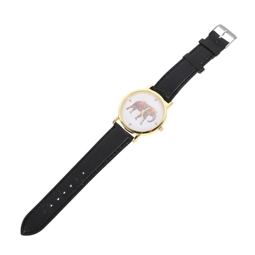 SOIMISS Fashion Casual Elephant Pattern Leisure Watch for Women and Men Unisex Lightweight Alloy Quartz Wristwatch with Black Imitation Leather Band Unique Gift for Valentine Day and