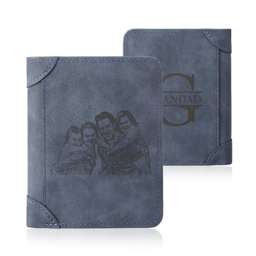 Personalized Leather Photo Wallet for Men - Engraved Name Letter Wallets for Dad, Husband, Boyfriend - Gift for Father's Day Christmas Valentine (Style 1)