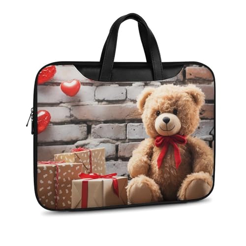 Cute Bear Valentine Gift Printed Leather Shoulder Messenger Bag Briefcase for Men Women Travel Business Office Hangbag Laptop Pack Crossbody