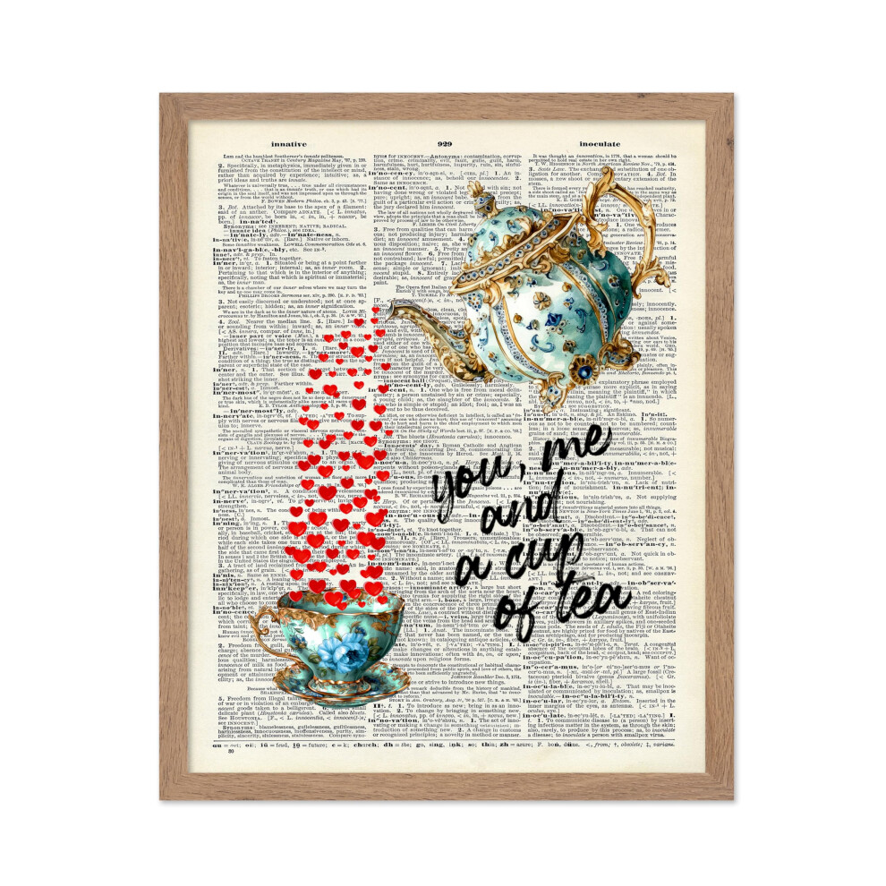 Poster Master Dictionary Art Poster - You Me and a Cup of Tea Print - Tea Pot Art - Red Hearts Art - Valentine's Gift for Men Women - Romantic Decor