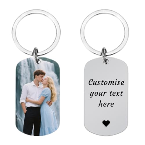 AnJeey Personalised Keychain with Custom Photo & Text - Romantic Keepsake Anniversary Valentine’s Gift for Men, Fiancé, Dad - Valentine‘s Day Gift for Him Boyfriend Husband (Vertical)