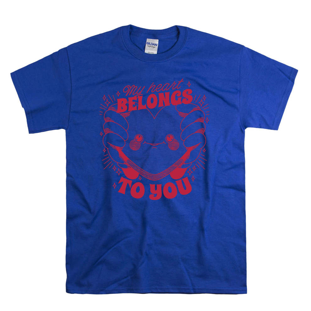 (Small, Blue) My Heart Belongs To You Valentine's Day Gift Men Women Unisex Top T Shirt