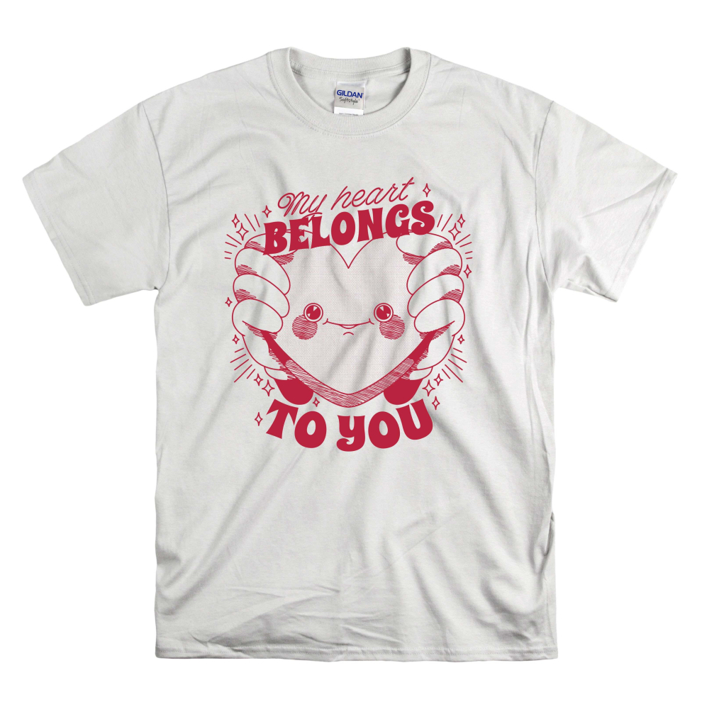 (Small, White) My Heart Belongs To You Valentine's Day Gift Men Women Unisex Top T Shirt