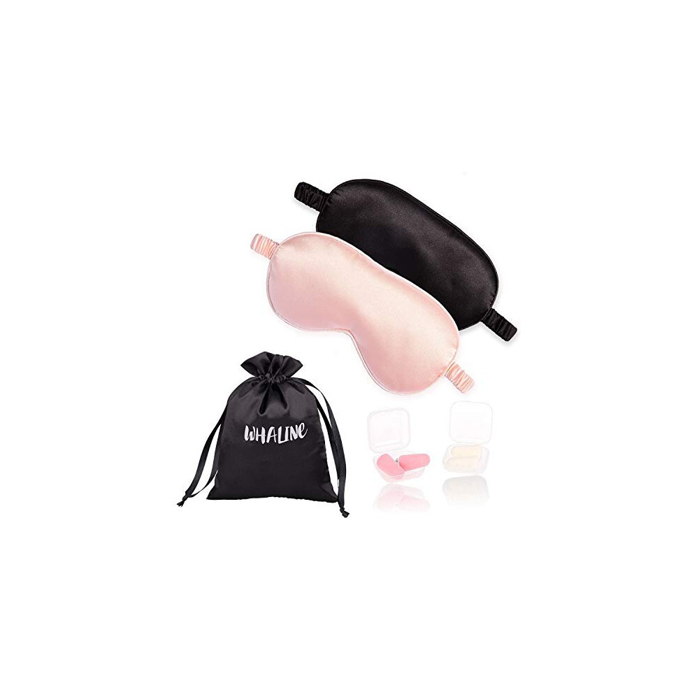 Whaline 2 Pcs Silk Sleep Eye Cover with Ear Plugs and Elastic Strap, Soft and Smooth Eye Cover for Valentine's Gift, Men & Women Night Sleeping,