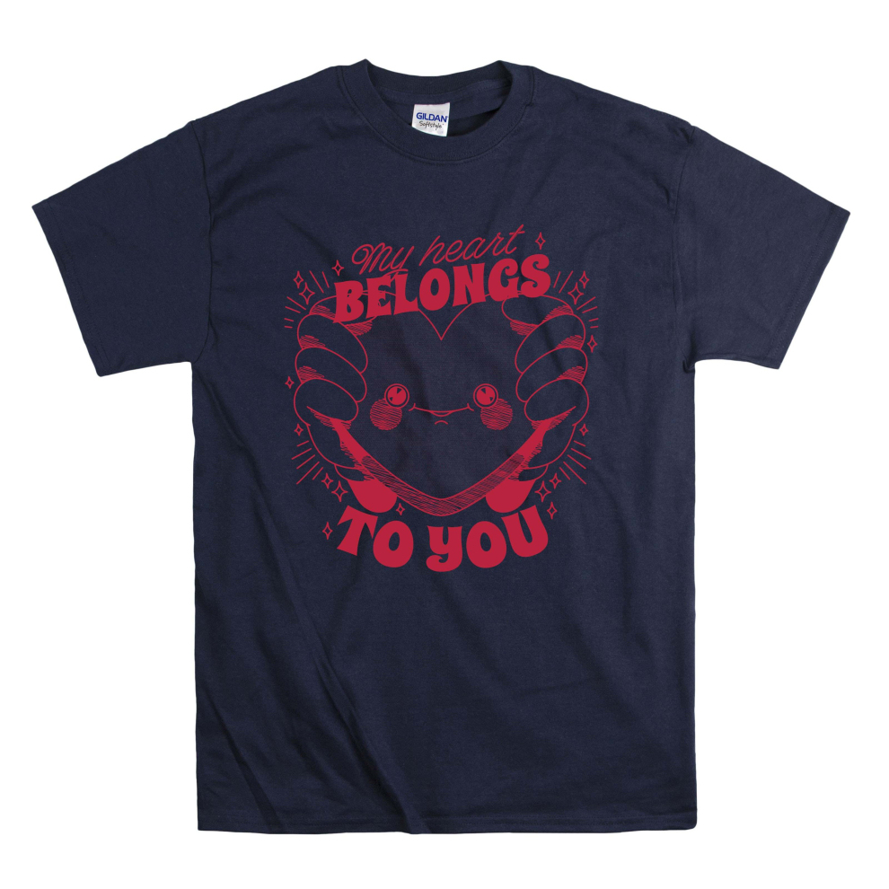(Small, Navy) My Heart Belongs To You Valentine's Day Gift Men Women Unisex Top T Shirt