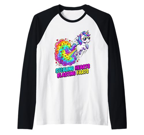 Funny Unicorn Fart Valentine Stealing Hearts Blasting Farts Raglan Baseball Tee
