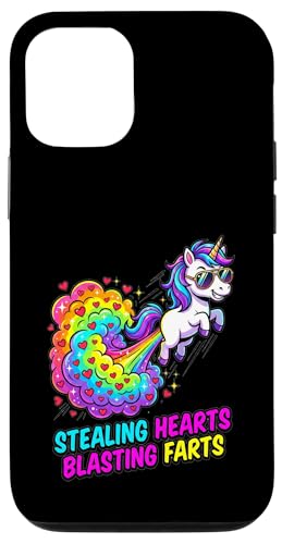 Funny Unicorn Fart Valentine Stealing Hearts Blasting Farts Case for iPhone 14 Pro Max