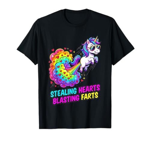 Funny Unicorn Fart Valentine Stealing Hearts Blasting Farts T-Shirt