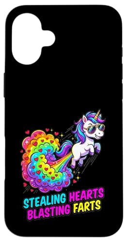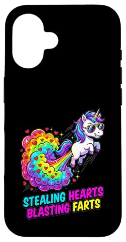 Funny Unicorn Fart Valentine Stealing Hearts Blasting Farts Case for iPhone 16 Plus