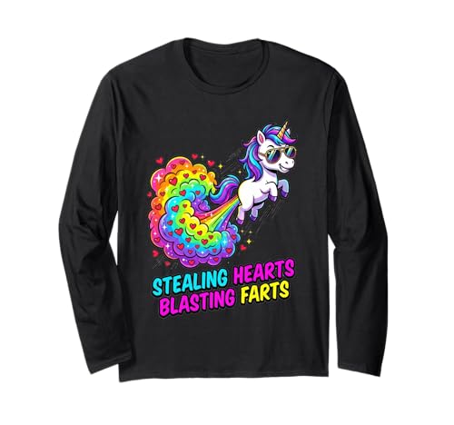 Funny Unicorn Fart Valentine Stealing Hearts Blasting Farts Long Sleeve T-Shirt