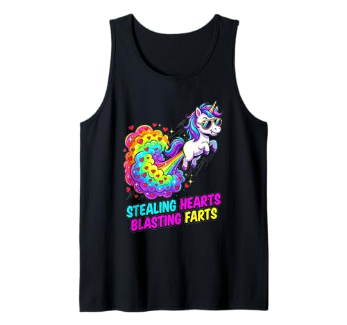 Funny Unicorn Fart Valentine Stealing Hearts Blasting Farts Tank Top