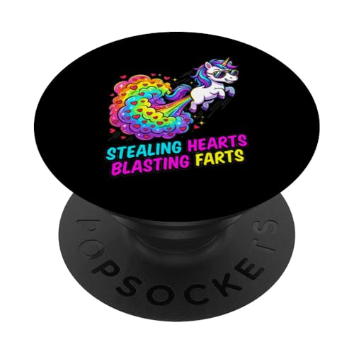 Funny Unicorn Fart Valentine Stealing Hearts Blasting Farts PopSockets Adhesive PopGrip