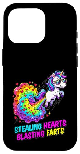Funny Unicorn Fart Valentine Stealing Hearts Blasting Farts Case for iPhone 16 Pro