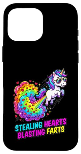 Funny Unicorn Fart Valentine Stealing Hearts Blasting Farts Case for iPhone 16 Pro Max