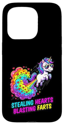 Funny Unicorn Fart Valentine Stealing Hearts Blasting Farts Case for iPhone 15 Pro