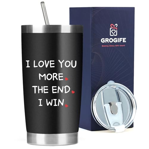 Grogife Gifts for Him Anniversary Valentines Birthday, Romantic Present for Boyfriend Husband - I Love You Gift for Him Boyfriend, Gifts for Men Fiance Valentine Day, Tumbler & Travel Mug 600ml