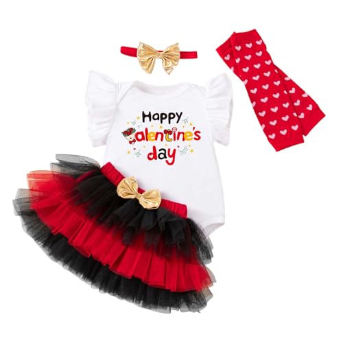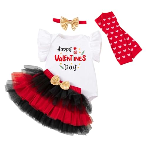 Valentines Day Baby Girl Outfits Adorable Ruffle Sleeve Bodysuit Skirt Set Socks Headband Piece Ensemble Infant Toddler Photo Shoot Holiday Celebration Valentine Dresses Women Outfit Jumper Suit