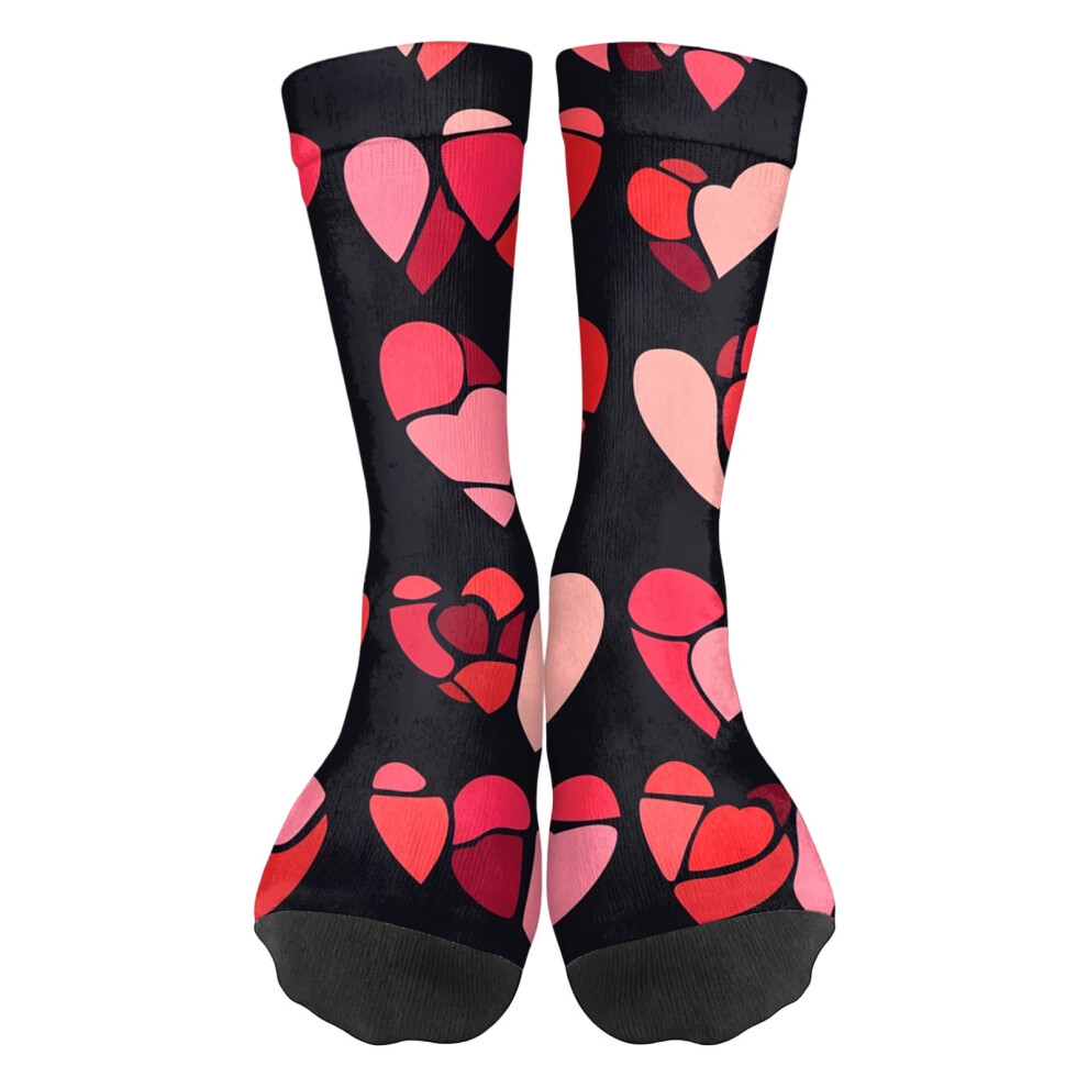 Red Jigsaw Heart Design Printed in Red Romantic Valentine Mens Black Cotton Rich Socks