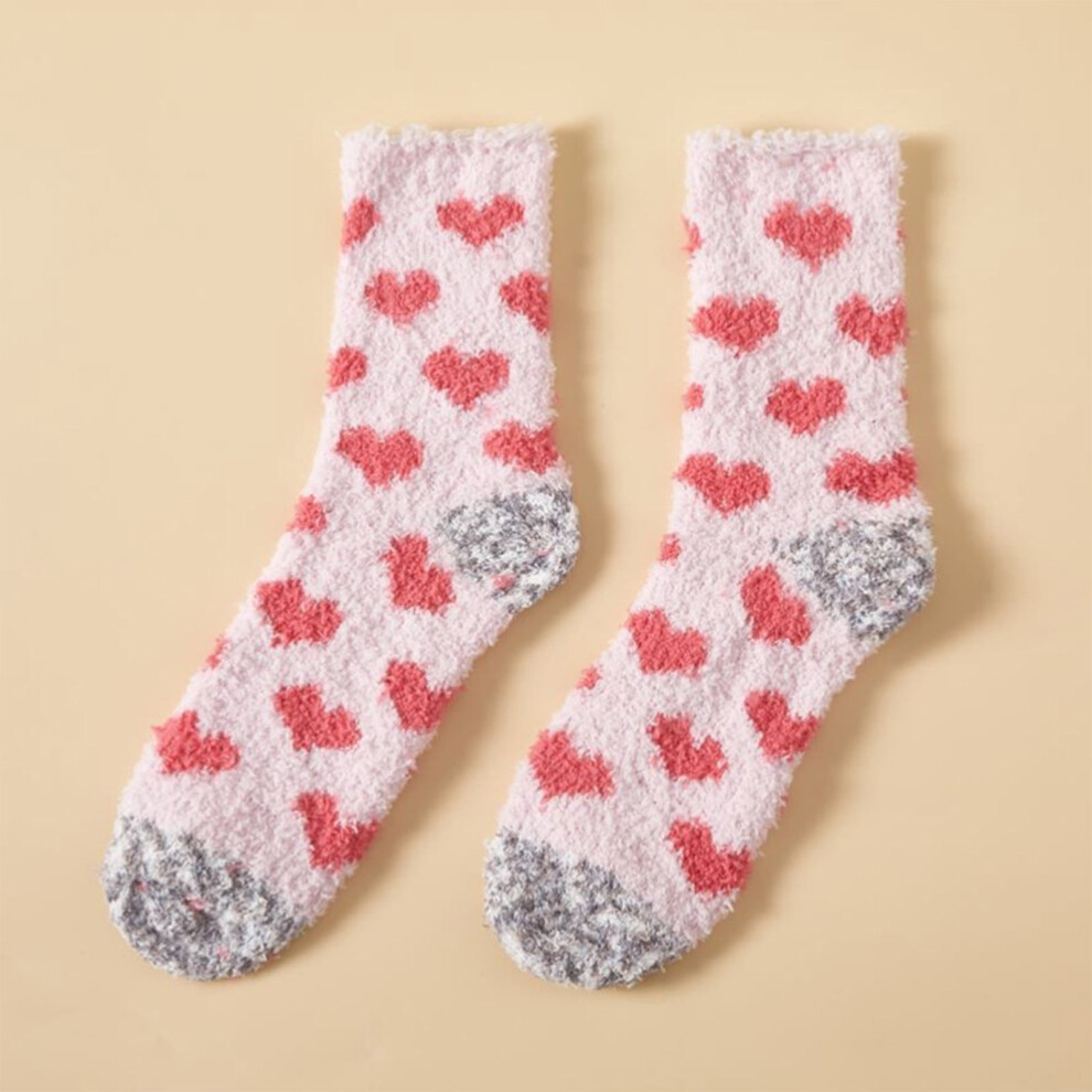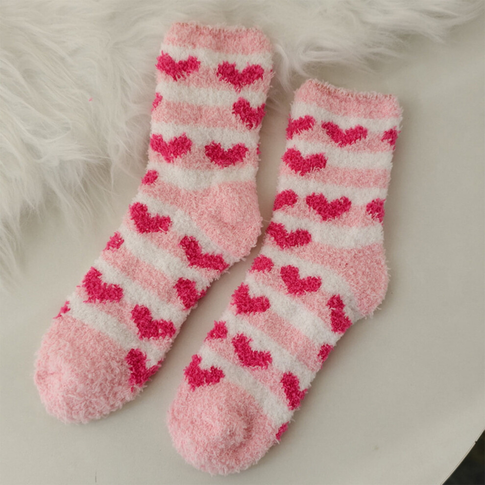 Willtoo Ladies' Coral Velvet Socks Valentine's Day Socks Velvet Socks Pink Heart Fuzzy Socks, Valentine's Day Theme, One Size, 12.99 Inches