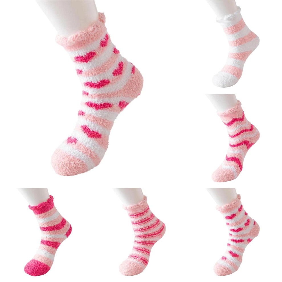 Women's Fuzzy Socks 6 Pairs â Pink Thick Coral Fleece Crew Socks, Extra Warm Winter Slipper Socks, Valentine's/Mother's/Christmas Gift