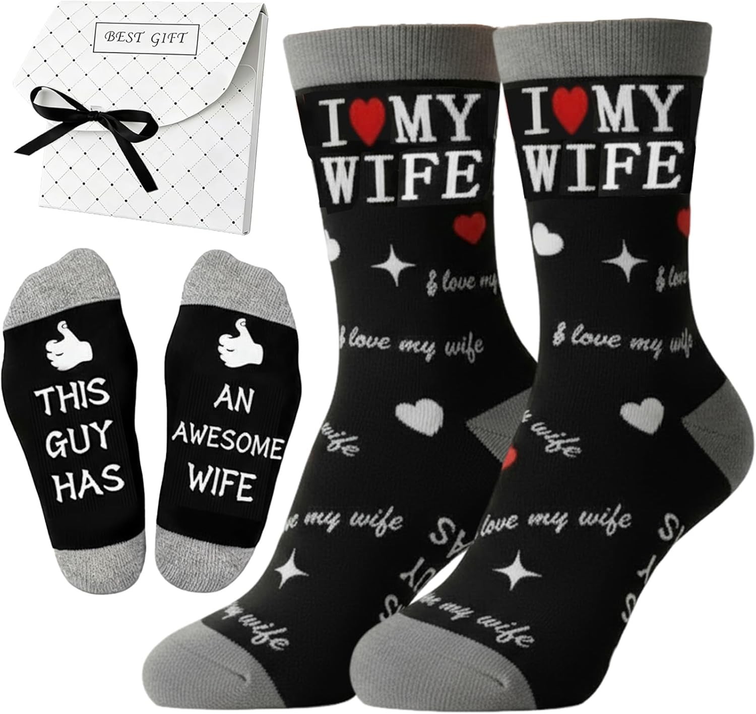 Valentine's Day Socks for Husband | I Love My Wife & THIS GUY HAS AN AWESOME WI