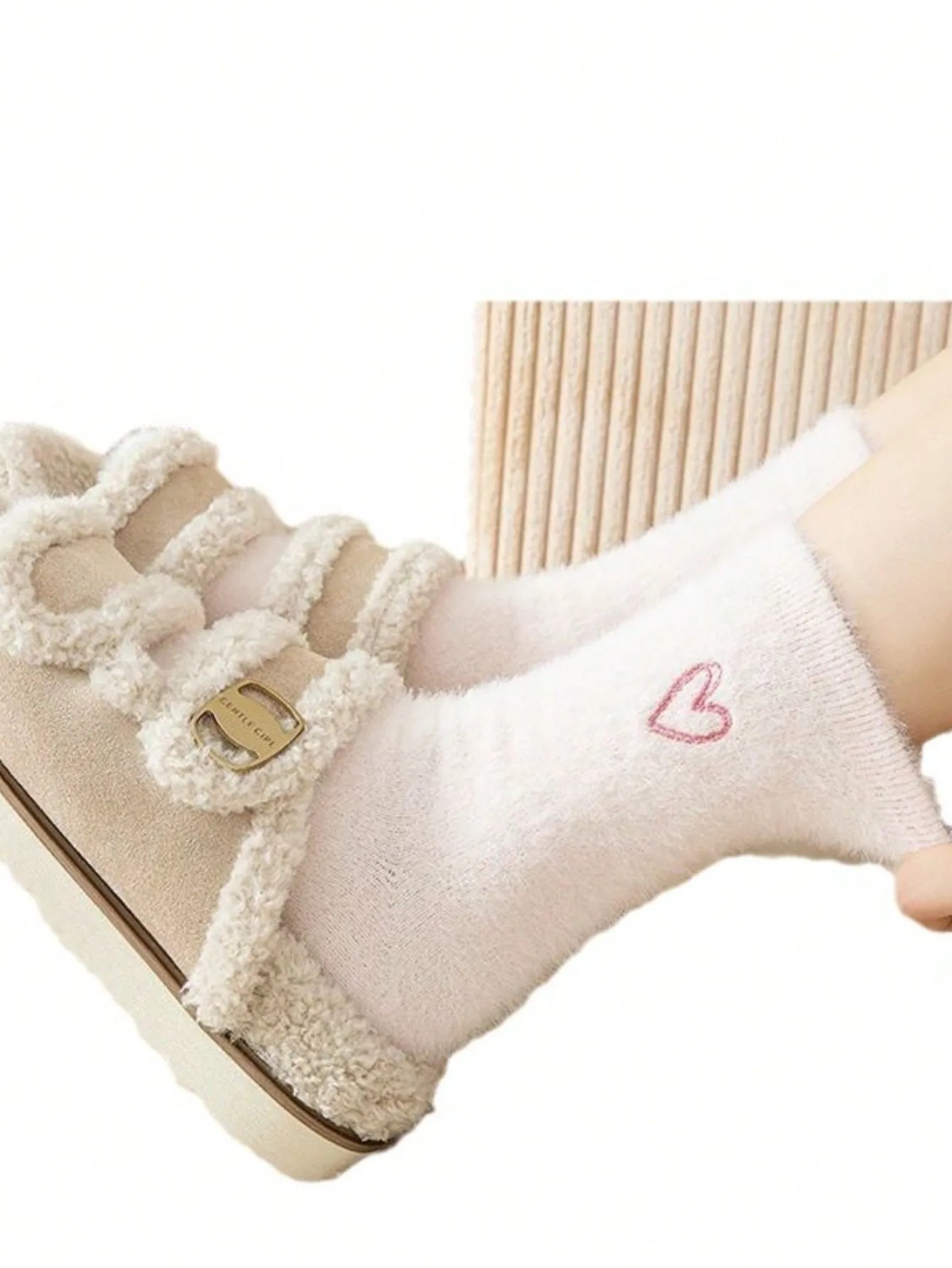 5‑Pair Heart‑Embroidered Soft Fluffy Calf Socks Valentine’s Day ready gift 🎁