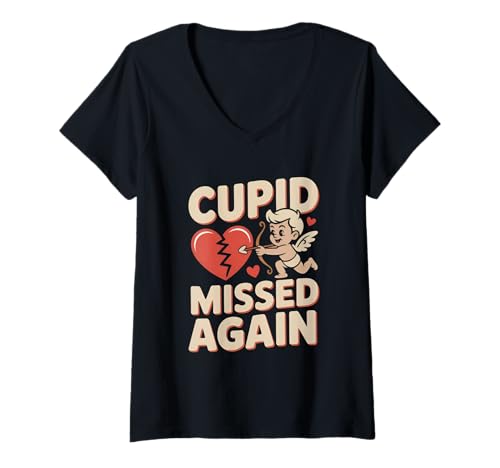 Womens Cupid Missed Again Funny Anti Love Sarcastic Retro Design V-Neck T-Shirt