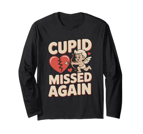 Cupid Missed Again Funny Anti Love Sarcastic Retro Design Long Sleeve T-Shirt