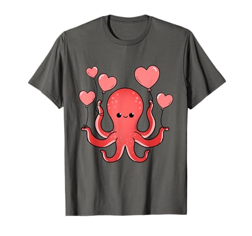 Octopus With Heart Balloons Valentines Day Octopus T-Shirt