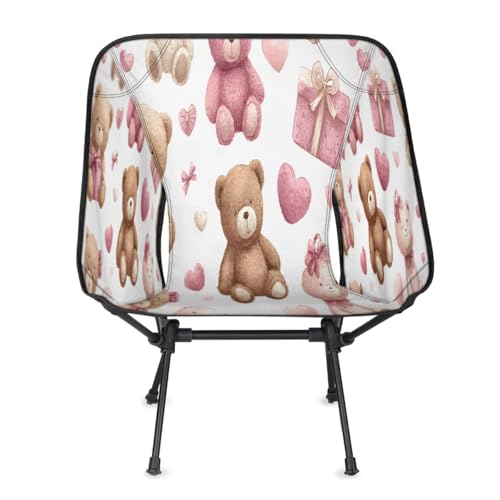 TULIMET Valentines Bear Pink Heart Camping Chair Folding Backpacking Chair, Portable Lightweight Outdoor Chairs with Side Pockets for Hiking Beach Picnic