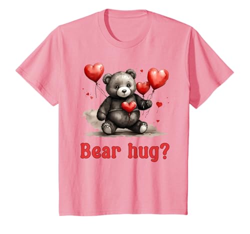 Youth Cute Valentines Bear with Heart Balloons. Kids, Boys & Girls T-Shirt