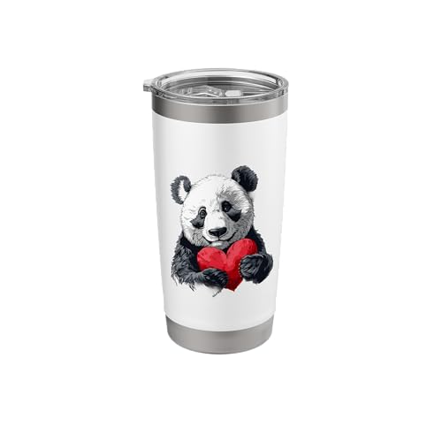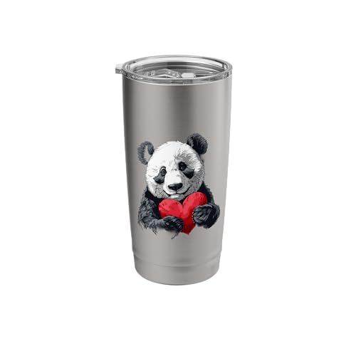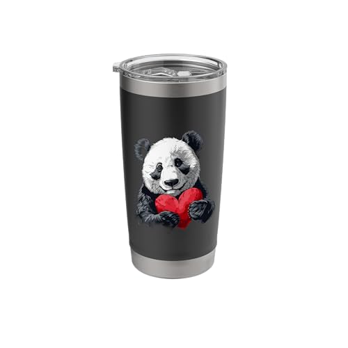 Valentines Day Panda Bear Heart Panda Bear Hugging Heart Stainless Steel Insulated Tumbler