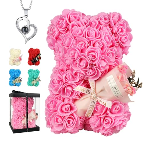 Valentines Gifts for Her Rose Bear Gifts for Women,Cute Teddy Flower Bear Birthday Gifts for Her, Rose Teddy Bear Valentines Day, Mothers Day, For Wife Mom Girlfriend (Pink)