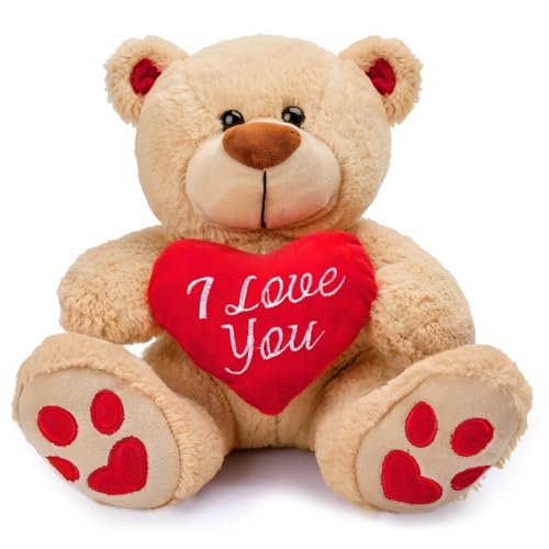 Beyond Happy 'I Love You' Cuddly Teddy Bear - 20cm Soft Plush Valentines Love Bear Holding Red Heart (Brown)