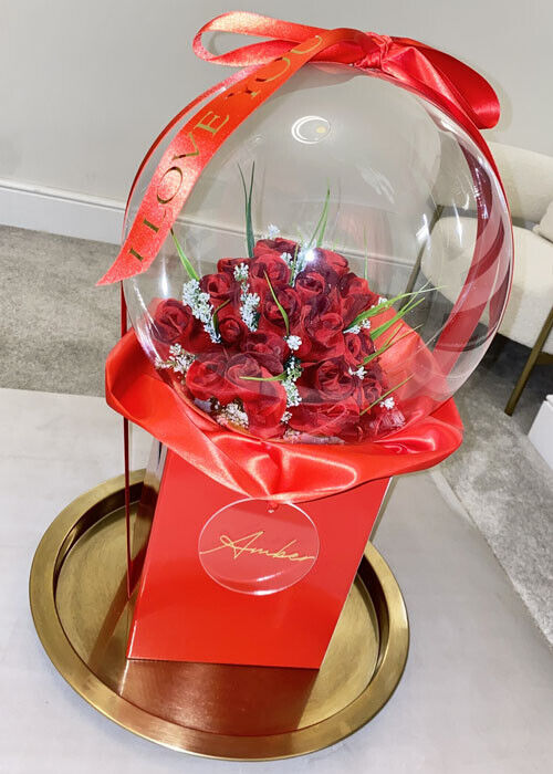 COMES INFLATED Luxe Valentines Red Rose Bouquet Bubble Balloon Decoration 54cm