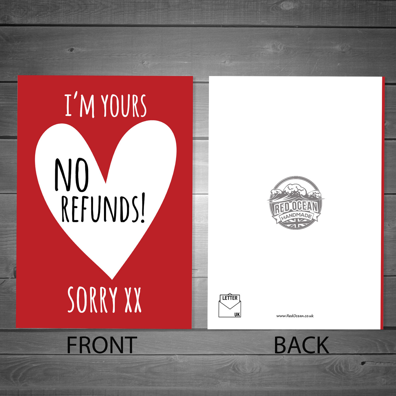 FUNNY NO REFUNDS Valentines Card For Boyfriend Husband Or Wife Girlfriend