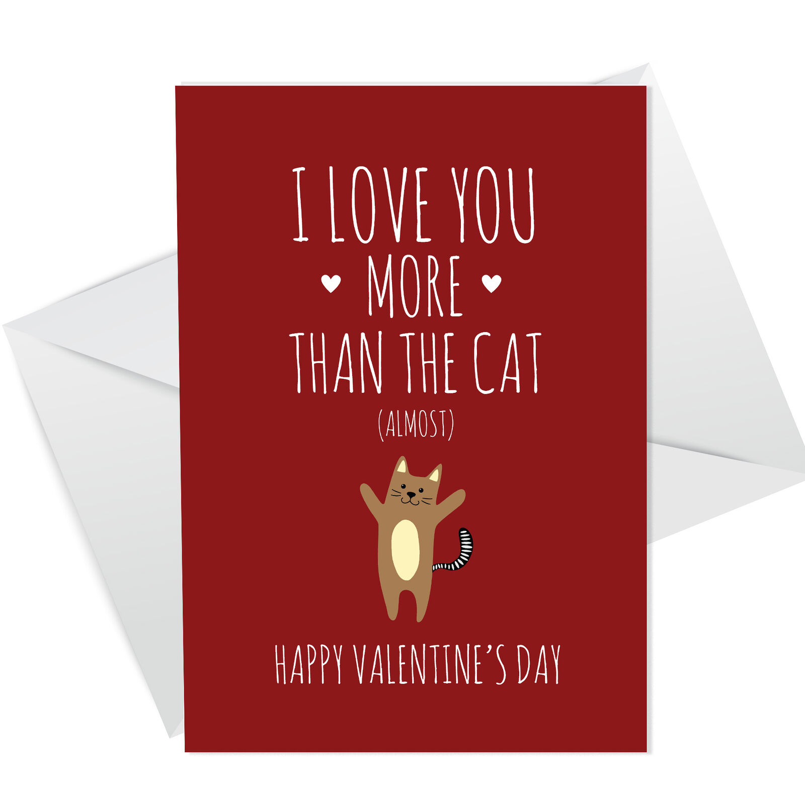 Love You More Than The Cat Funny Valentines Card For Him Her Boyfriend Husband