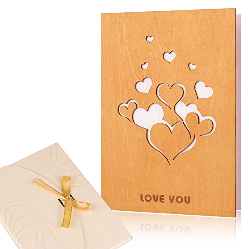 Tulolvae Valentines Cards for Him Her, Wooden Heart Anniversary Greeting Cards Gifts for Husband Wife, Valentines Day Birthday I Love You Romantic Presents for Girlfriend Boyfriend Couple