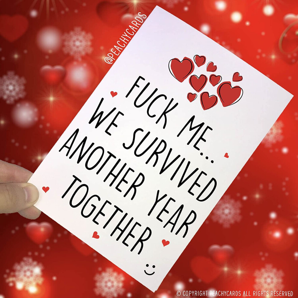 Peachy Antics Funny Cards, Valentines, Anniversary, Birthday Cards, Husband Wife Boyfriend Girlfriend Swearing Cards Humorous Survived Another Year PC