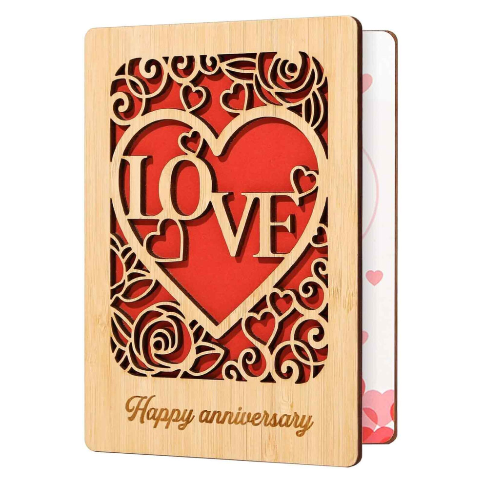 APPCRFM Anniversary Card for Husband Wife,Handmade Wooden Greeting Cards,Anniversary Card, Happy Valentines Day Cards, Birthday Wedding for Husband Wife Girlfriend Boyfriend Parent Couple