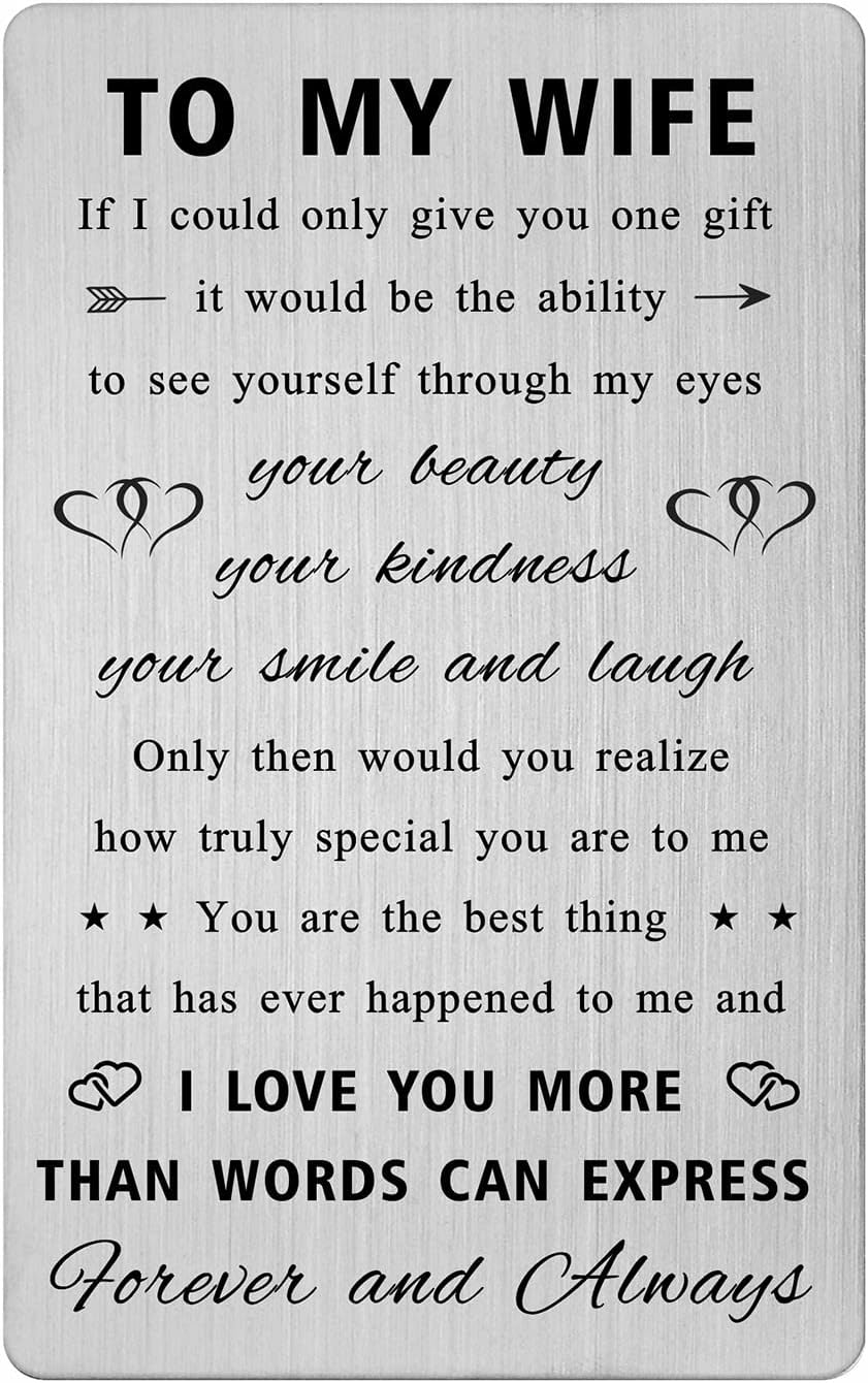 RYTTGOP Personalized Metal Photo Wallet Card - Custom Picture Text Engraved Wallet Insert, Double Message Cards for Him or Her, Photo Love Note Card, Anniversary Valentines Gift for Husband Wife Men