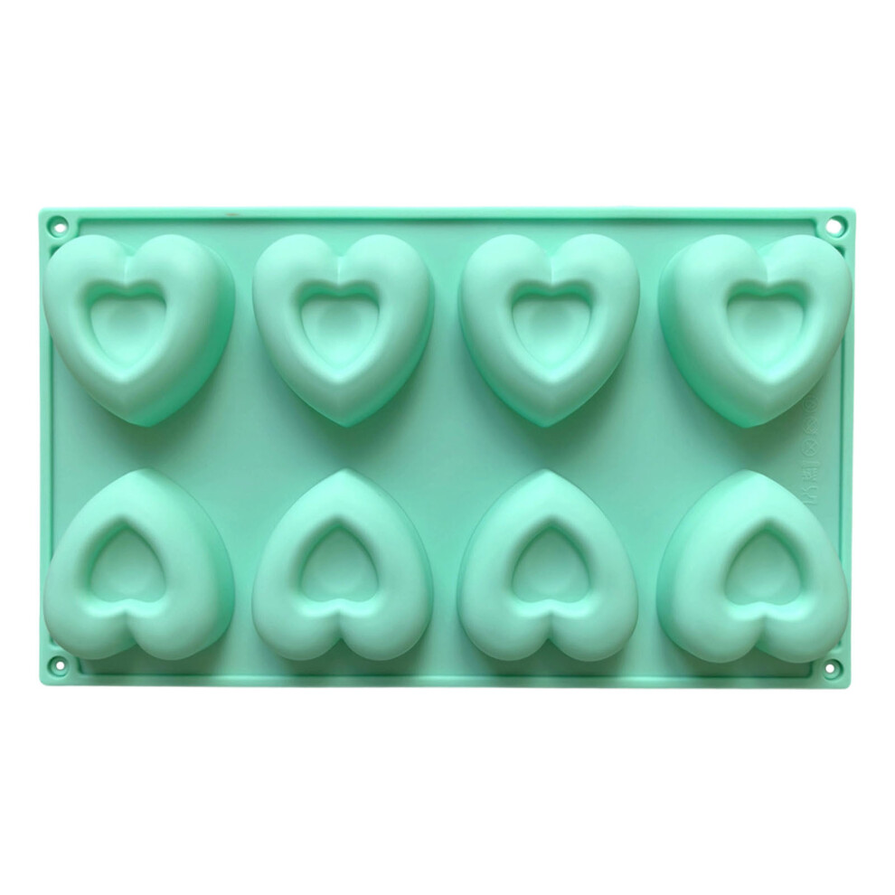 (Green) Handmade Heart-Shaped 8-Cavity Silicone Molds Valentines Chocolate And Ice Cubes Tray For Romantic DIY Treats