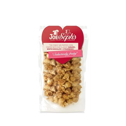 Joe & Seph’s Valentine’s White Chocolate & Strawberry Popcorn (70g), gourmet popcorn, air‑popped with creamy white chocolate and real strawberry pieces, limited‑edition Valentine’s treat