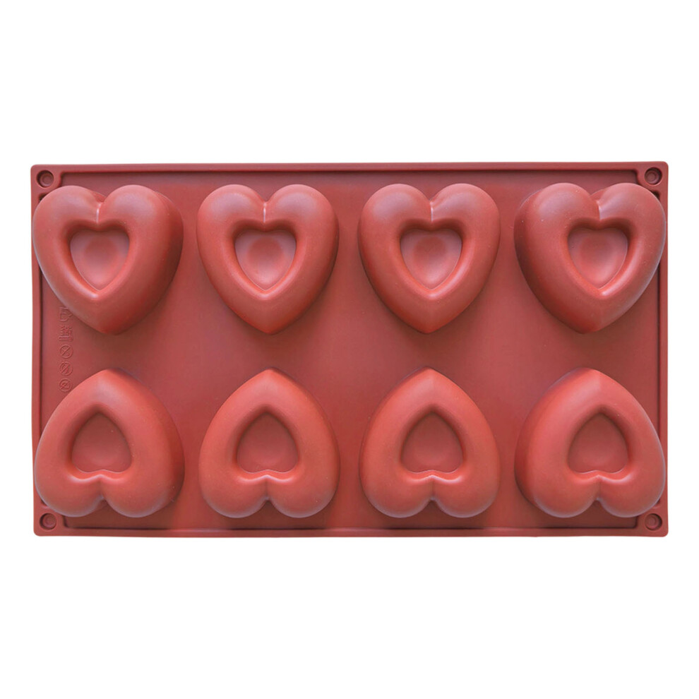 (Red) Handmade Heart-Shaped 8-Cavity Silicone Molds Valentines Chocolate And Ice Cubes Tray For Romantic DIY Treats