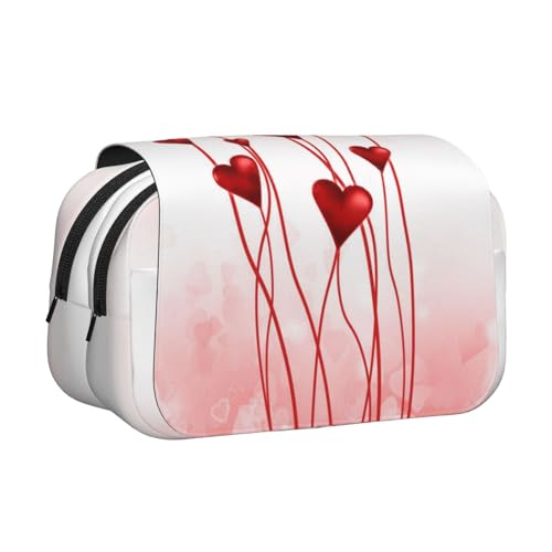 SATUSA Valentines Day Heart Shape Balloon Print Pencil Case Large Capacity Pen Pouch Pencil Bag with 2 Compartments Pen Holder Organizer Stationery Bag
